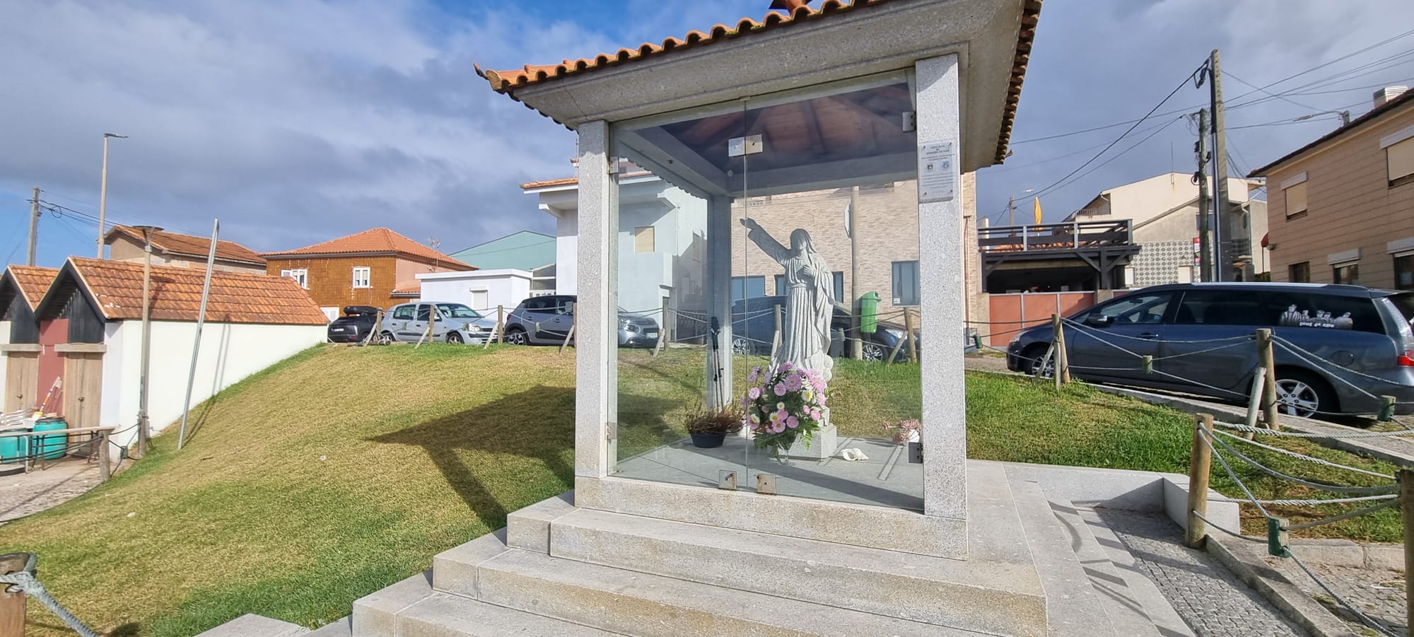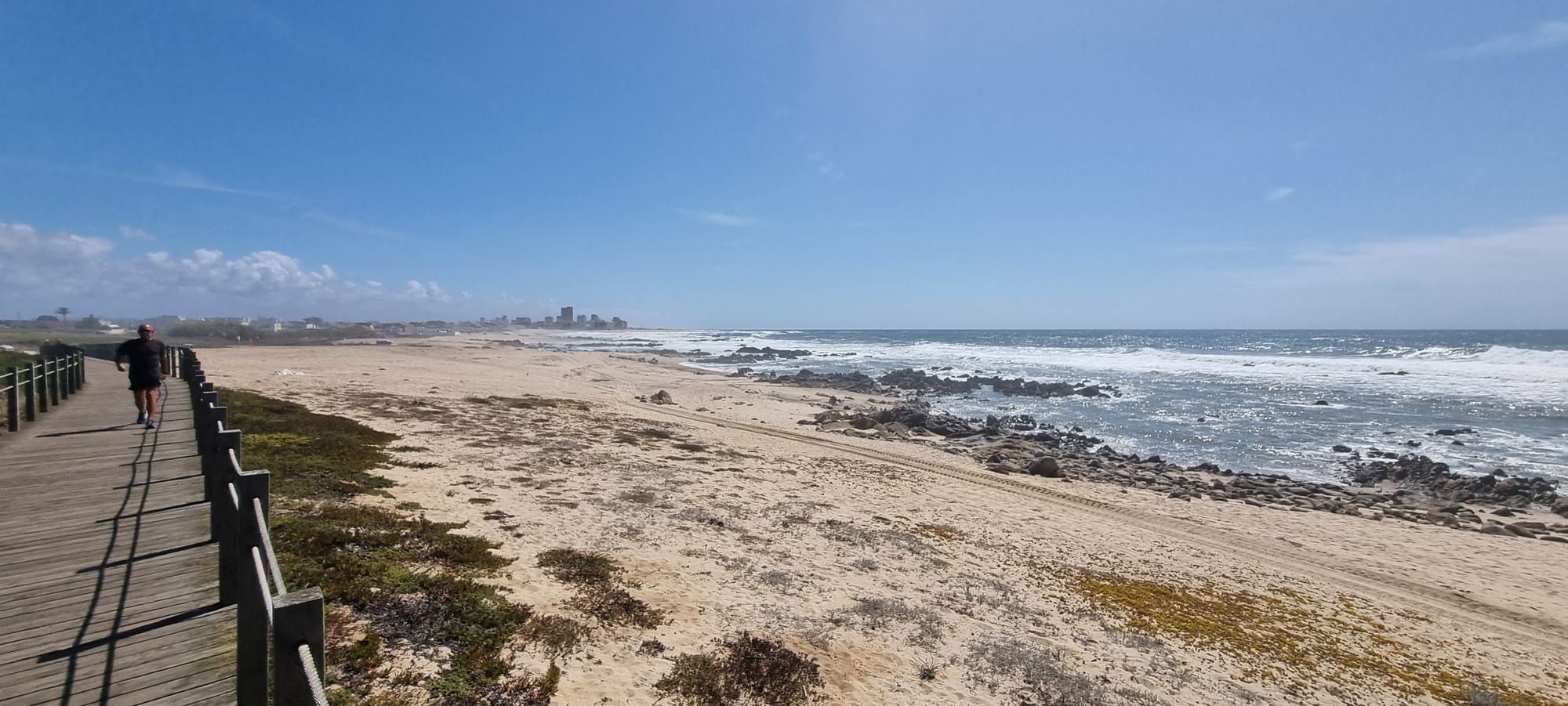 The traditional route ia about 50m inland, and designed to be safe in winter storms. If there are no storms then it could be better to go past the castle in Vila do Conde and walk along the coast. Both ways meet in Povoa da Varzim. The traditional route is light-industrial in parts.