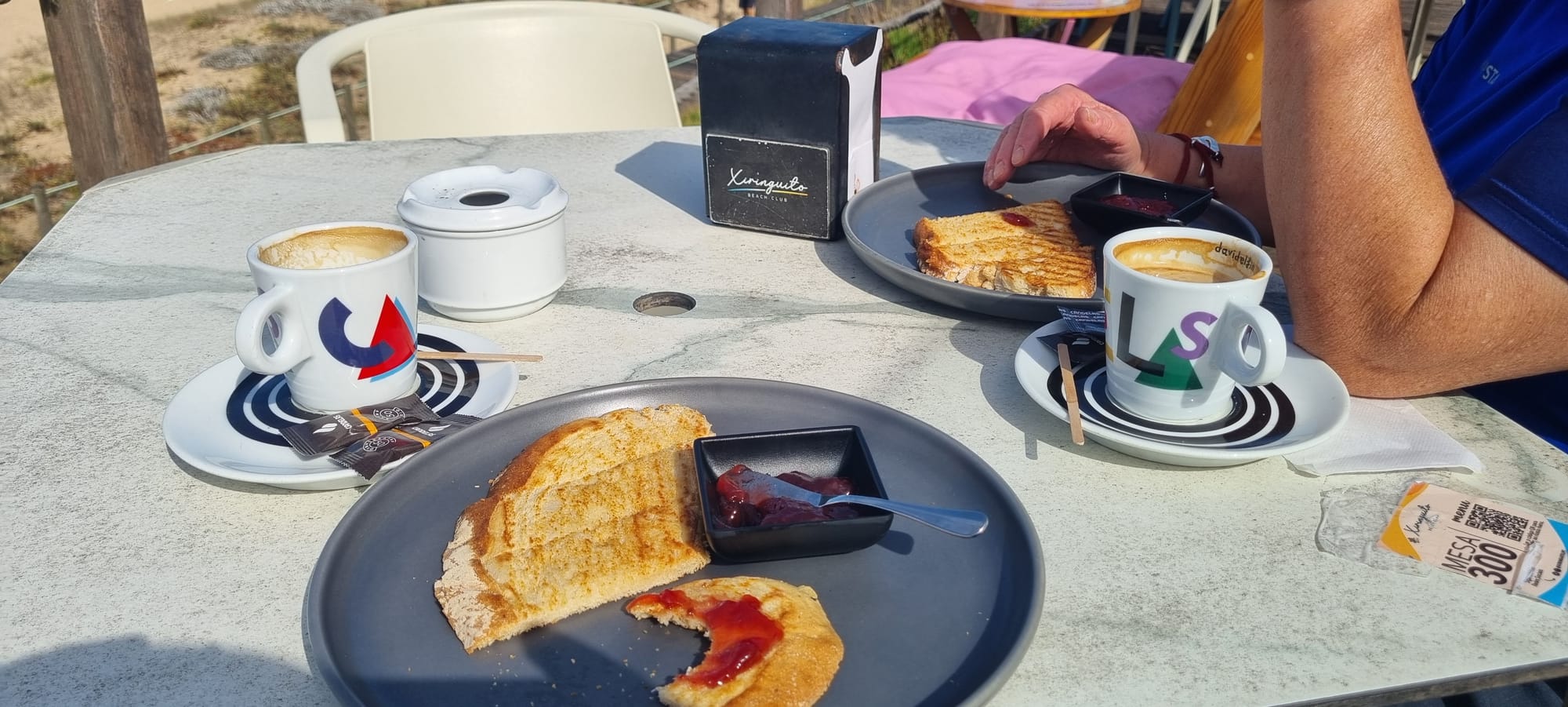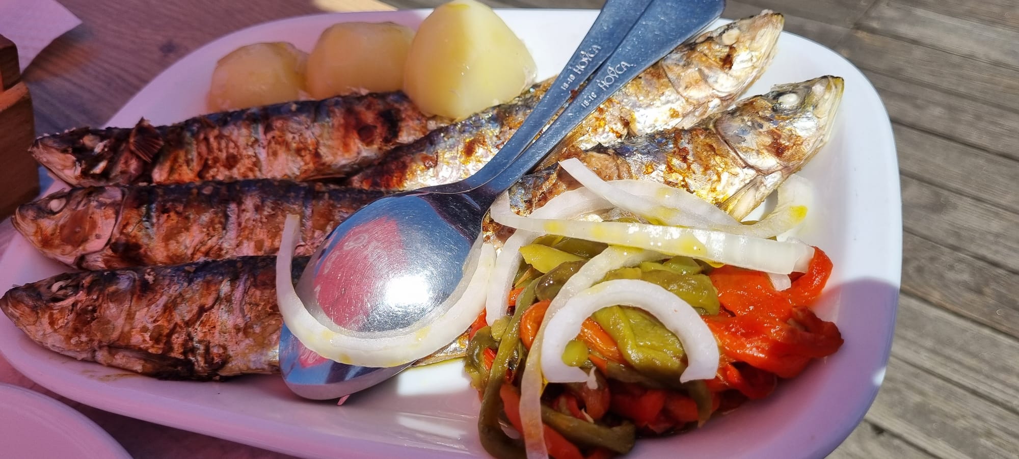 Lunch, sardines for me and pasta for the walking buddy and an hour and a half watching the sea in blazing sunshine.
