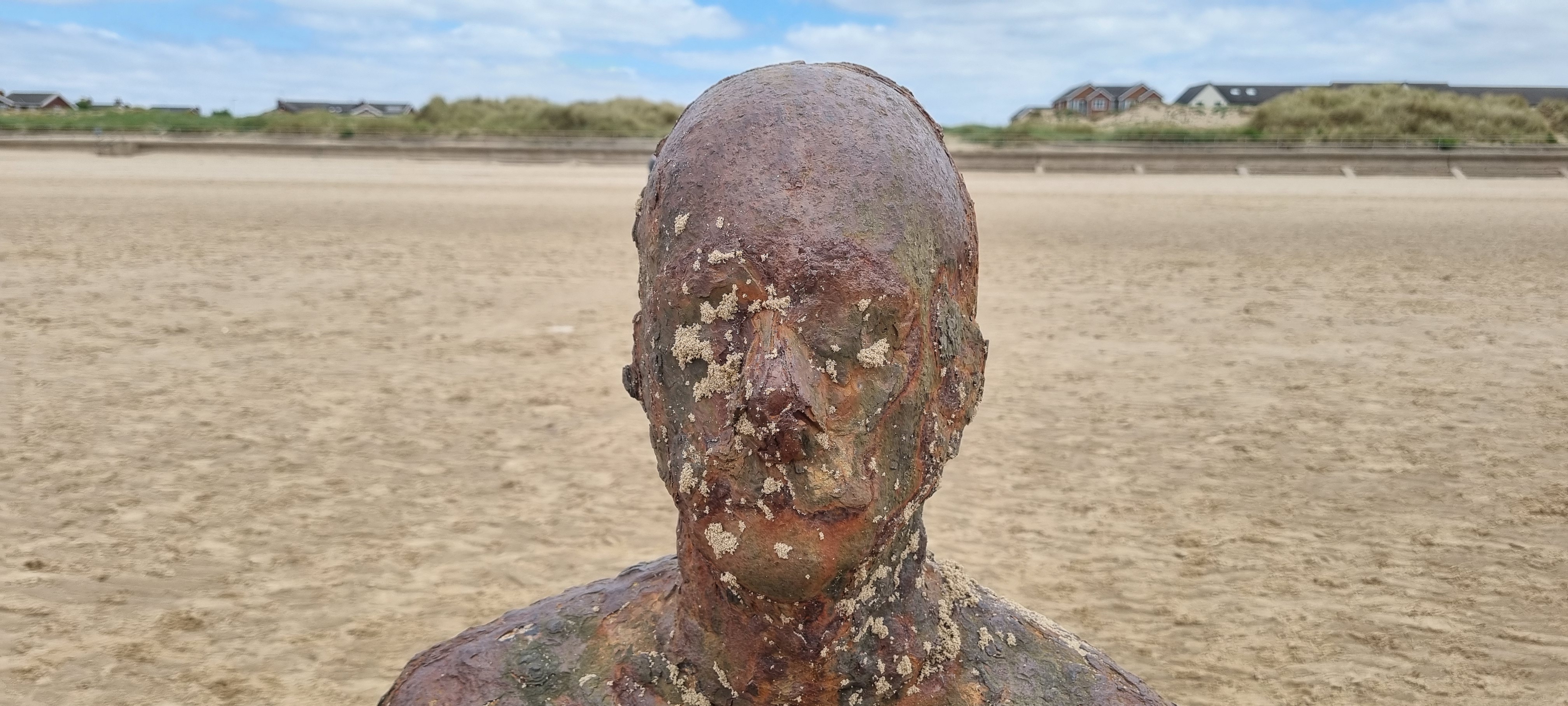 Loads of steel chaps on plinths or buried by the tides to their heads gazing out to sea. You can make of it what you will.