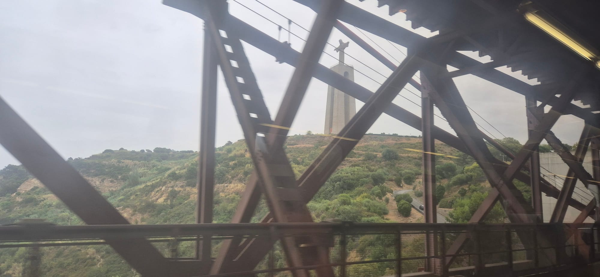 We arrived in Lisbon Oriente station about half an hour late. But the journey across the 25 April Bridge, which crosses the River Tagus in Lisbon, from the south to the north was very impressive.