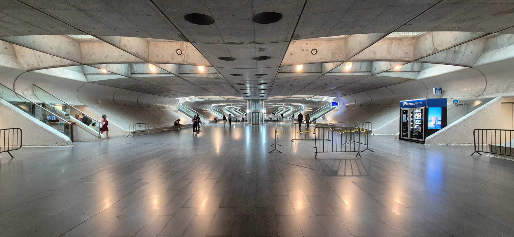 The station works, kind of, because Lisbon is warm and mostly the weather is benign. Put it in Britain and the open spaces, lack of real shelter, and wind-swept galleries would close it in weeks.