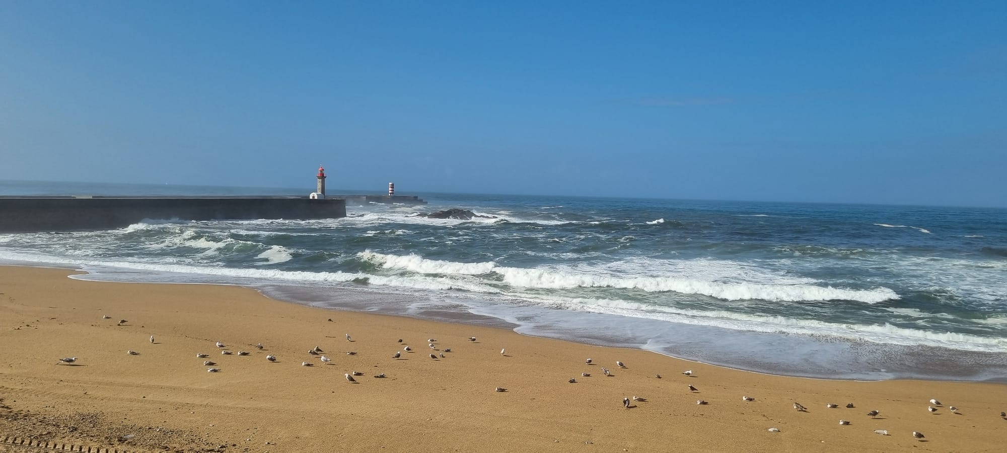 We reached the lighthouse where the Duro reaches the Atlantic and were kept back from the edge by 50m for 400m because of the danger of the energetic sea.